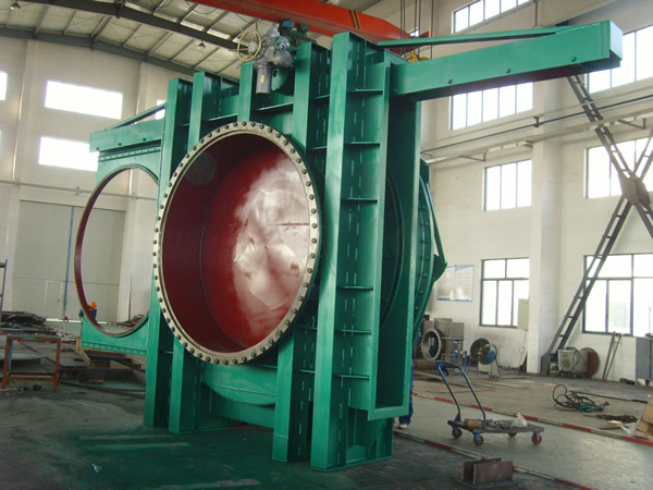 方箱結(jié)構(gòu),閥箱剛性好敞開式插板閥中的前、后閥箱的剛性決定了整個(gè)閥的密封性能;我廠采用兩塊鋼板中通過(guò)科學(xué)地布置筋板組成一個(gè)剛性的方箱結(jié)構(gòu)的方案,此方案通過(guò)實(shí)際應(yīng)用證明剛性可靠,用料省,為插板閥具有良好的密封性能打下了基礎(chǔ)。 大齒圈式傳動(dòng),保證同步夾緊,采用多點(diǎn)布置螺旋傳動(dòng)絲杠,保證夾緊力大,密封可靠;大齒圈式傳動(dòng),保證多點(diǎn)同步夾緊;采用硅橡膠密封圈密封圈耐溫高,保證密封絕對(duì)安全可靠。